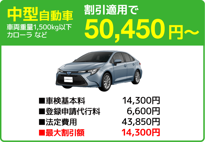 ※上記料金表は初年度登録より13年未満のお車が対象となります。エコカー減免対象車種および初年度登録13年以上経過の自動車重量税についてはお問い合わせ下さい。